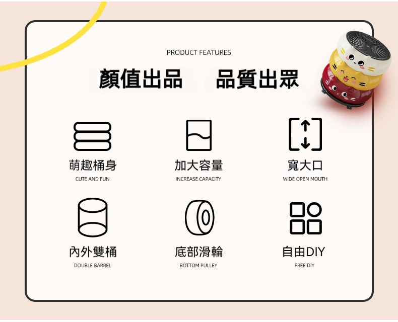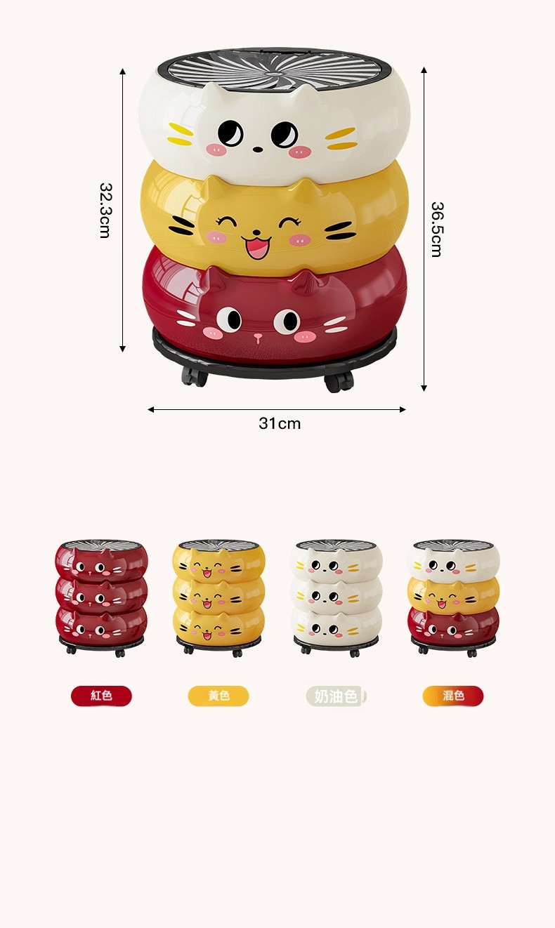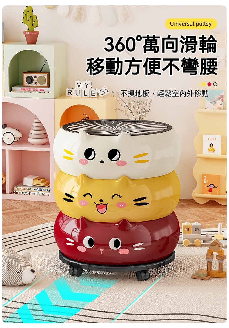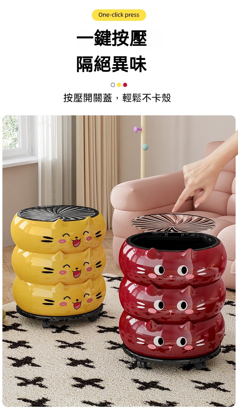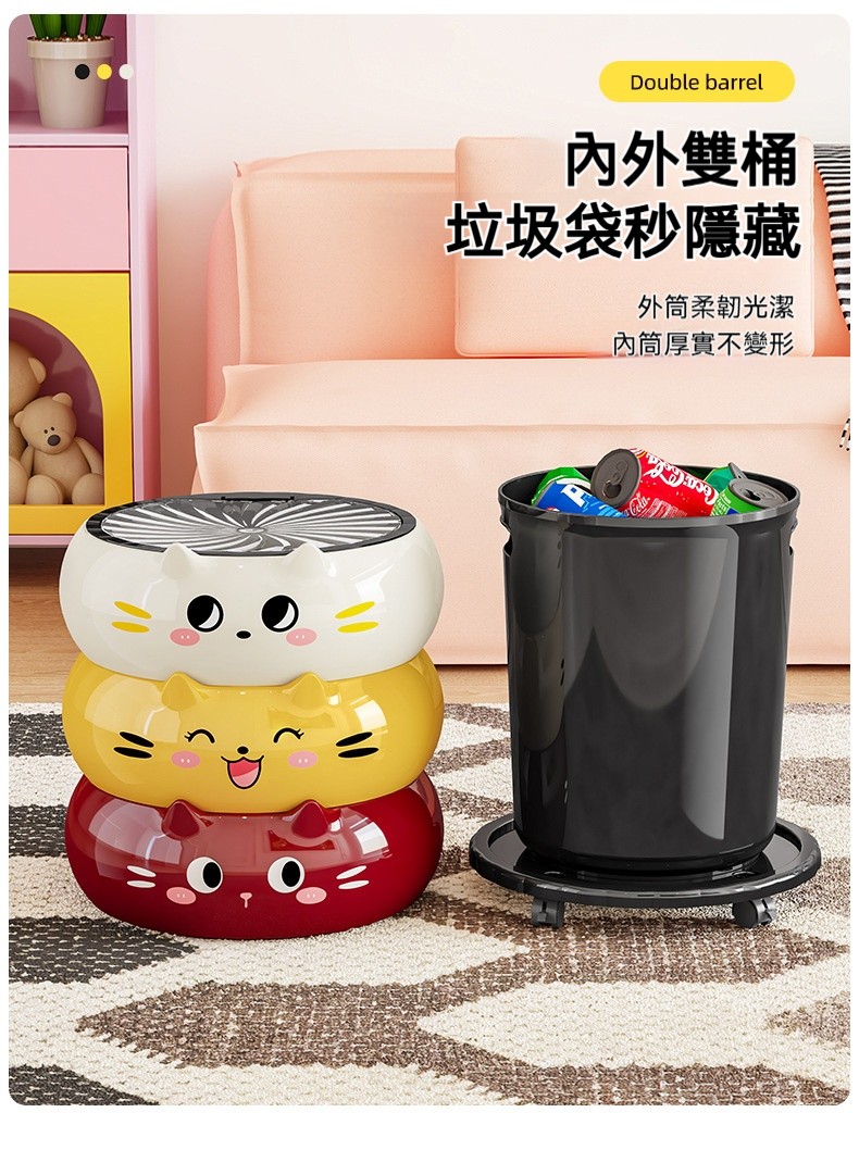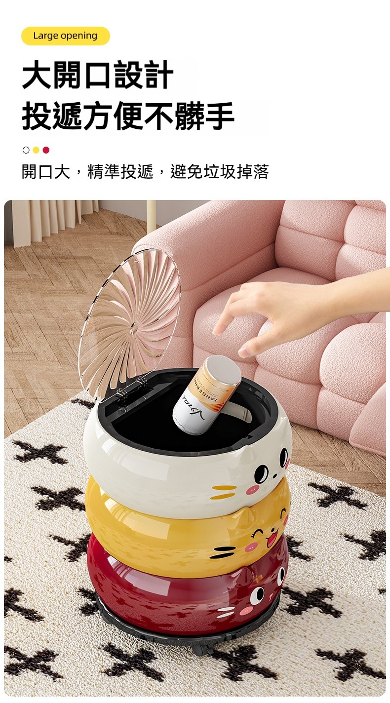 【2026新款】卡通貓咪垃圾桶|高顏值可愛帶蓋紙簍 ✨ 可移動附輪設計,客廳/廚房/臥室/衛浴都適用!❤️✅ 運送時間(台灣約 3-5天) ✅ 貨到付款、可拆驗、免刷卡